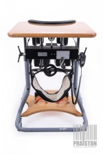 The stander is equipped with an electrically retractable belt used to support the patient,