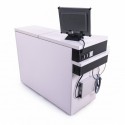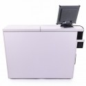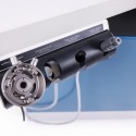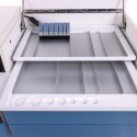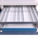 • Two extendable shelves on guides located under the upper tabletop, possibility of configuring aluminum trays according to your preferences,