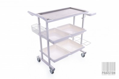 TECHMED mobile medical assistant with removable trays and a stainless steel top shelf,