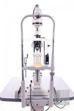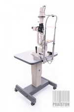 - Lampa szczelinowa TOPCON SL-3F umieszczona na mobilnym stoliku z możliwością elektrycznej regulacjo wysokość blatu w zakresie: 70 – 90 cm,