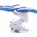 - Tapicerka z atestem medycznym w kolorze niebieskim (możliwość wymiany tapicerki na nową, z naszego wzornika kolorów za dodatkową opłatą),